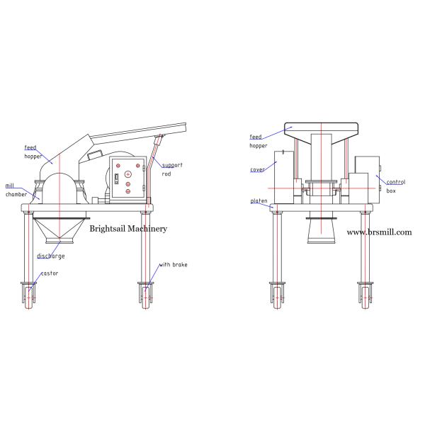 This machine is a high speed running one. The target material is smashed by the cutting and grinding of high speed knifes.There is screen mesh in mill chamber,if the particle is smaller than the hole size of screen mesh, it will pass the screen mesh and get out of the mill chamber by centrifuge force.If not, the particle will continue to be crushed in the mill chamber.
